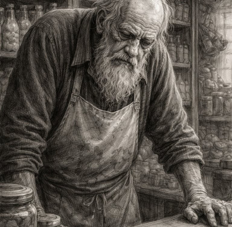 Babasından devraldığı bu bakkal bir zamanlar mahallenin kalbiydi. Çocuklar sakız alır, anneler ekmek parasını deftere yazdırır, komşular kapının önünde çay içerken esnaf muhabbeti yapardı. Ama yıllar geçti. Herkes aceleci, herkes yorgun oldu. Defter borçları kabardı, gelen gençler değişti.
